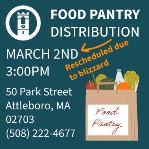 3:00 PM Food Pantry Distribution RESCHEDULED TO MARCH 2ND